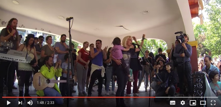 Obra cabecera: captura de YouTube del discurso de la artista y activista, Camila Moreno, como acción performática de unas futuridades maternales ya insertas en el espacio público, ya sucediendo. Discurso en Cacerolazo Cultural Ñuñoa (20 octubre 2019) gestionado por artistas independientes ante el decreto de estado de emergencia y la presencia de militares en las calles de Chile .