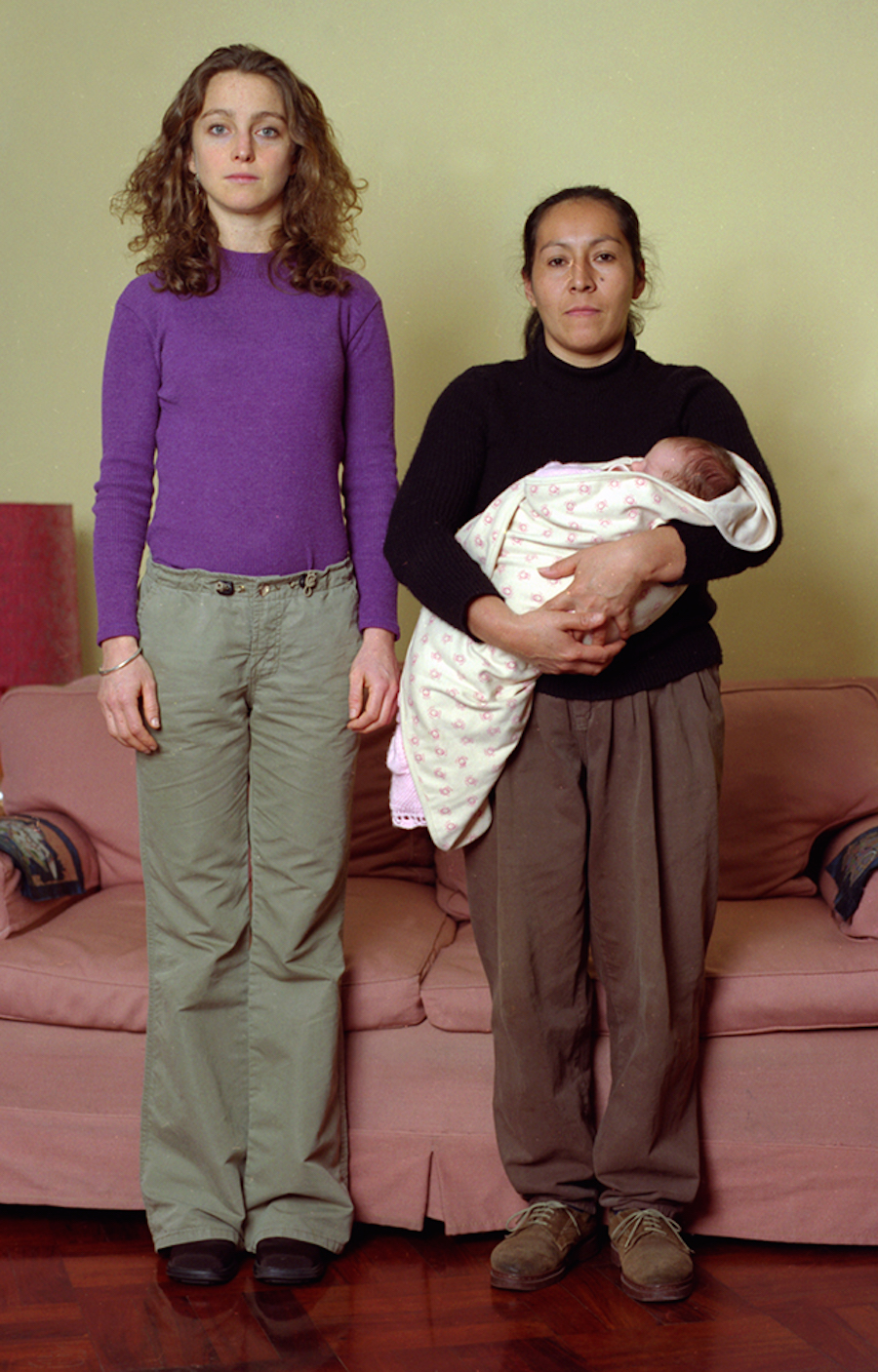 La otra (2001) de Natalia Iguiñiz, la cual acompaña esta reflexión, es una serie fotográfica que junto a Somos la excepción a los derechos laborales (2002) nos revelan prácticas sociales totalmente normalizadas que invisibilizan quien asumen los trabajos maternos externalizados o trabajos del hogar y de los cuidados, en qué condiciones se realizan, cual son las causas de tal externalización y que violencias reproducen sobre los cuerpos maternos asalariados que las asumen como trabajo externalizado. Prácticas que niegan la potencia económica de los mismos debido a que son trabajos desarrollados a partir de unas condiciones sociolaborales marcadas por un sistema de expropiación colonial o lo que es lo mismo: por un machosistema extractivista sobre todos los cuerpos sean animales-humanos, animales no-humanos o cuerpo viviente-naturaleza.
