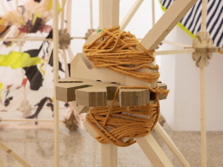 Obra cabecera: Dos garra que hacen un huevo (2022) de Ariadna Guiteras. Imagen correspondiente al detalle que conforma la instalación presentada en Dilalica (BCN) curada por Cati Bestard y Marta Sesé, donde encontramos una cuerda amarrada -como fuerza viva- que materializa nuevas articulaciones identitarias ante las crisis normativas que atraviesan a los cuerpos empujados por bio-procesos.